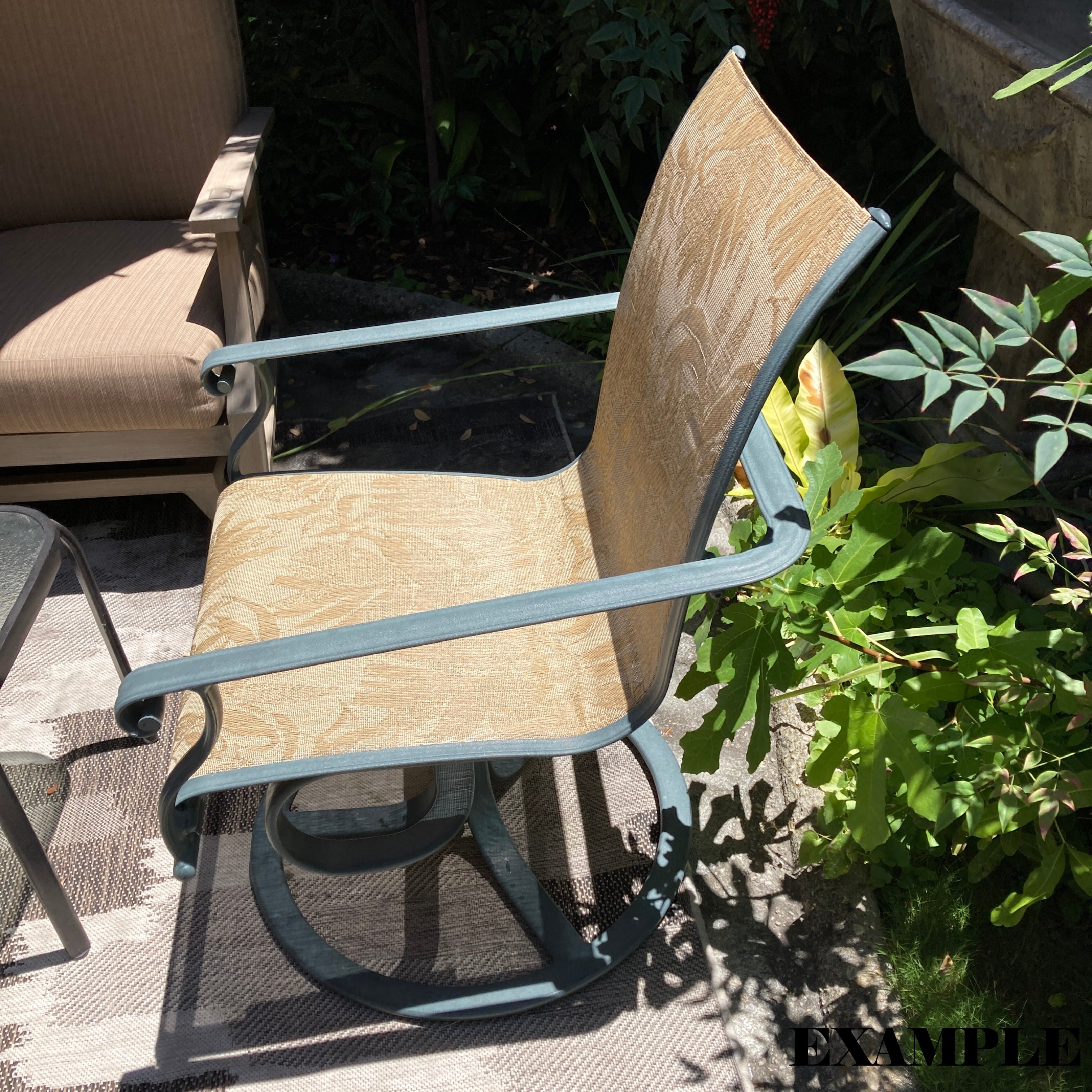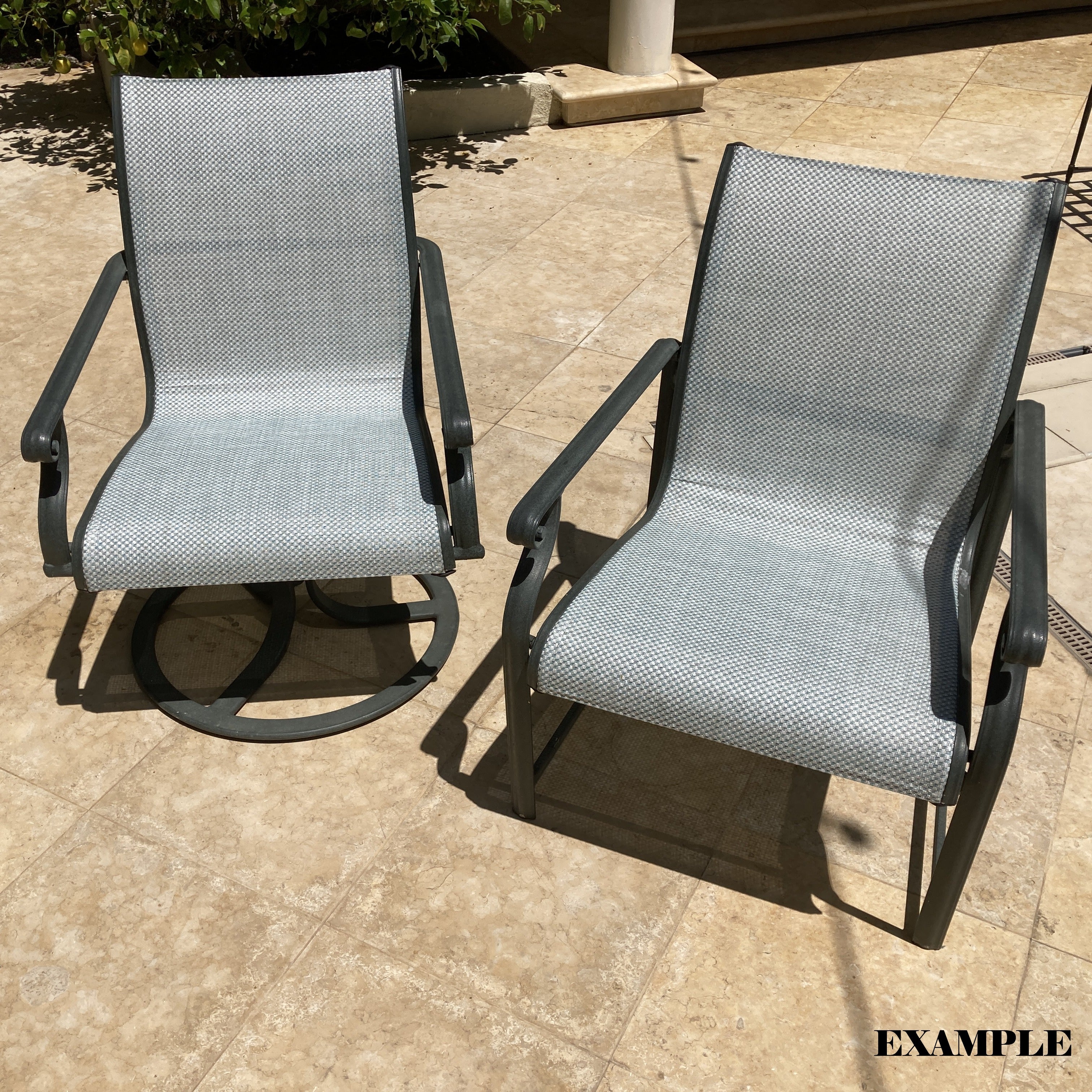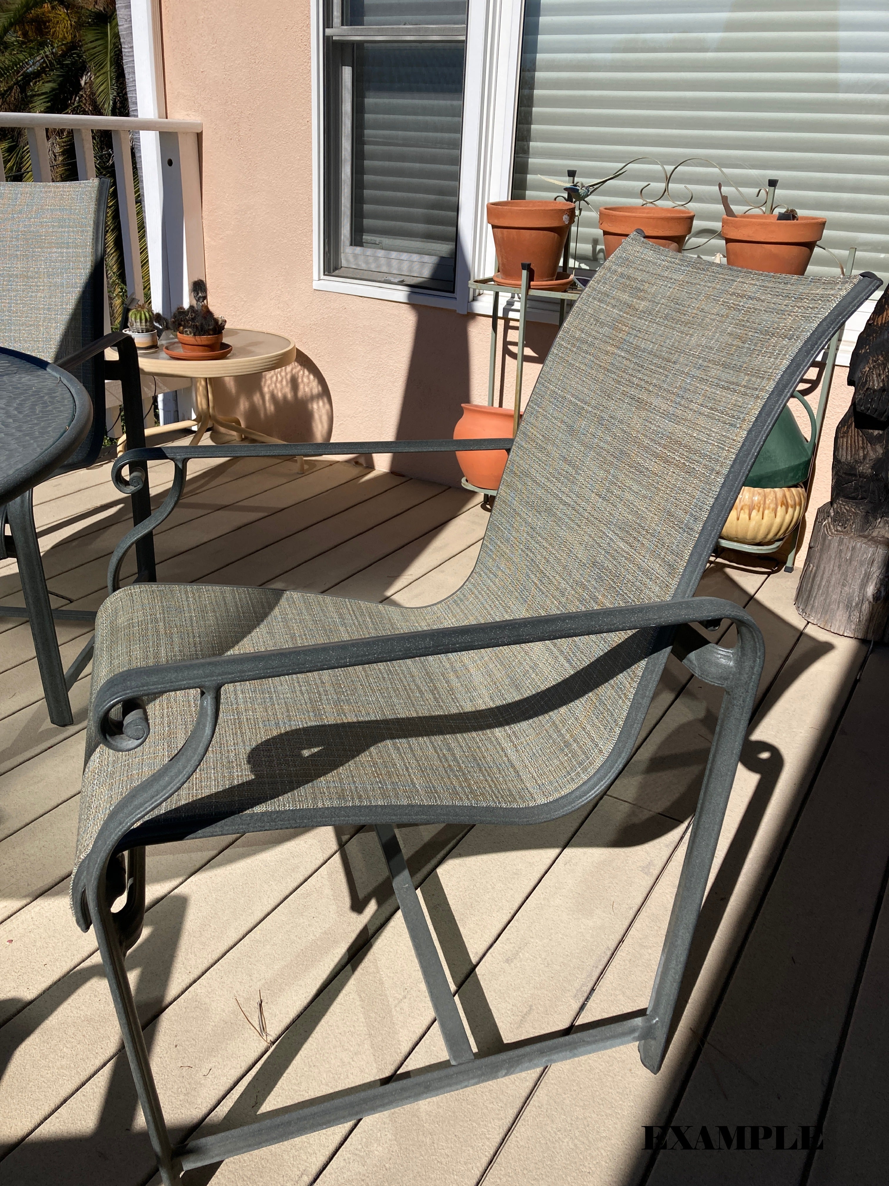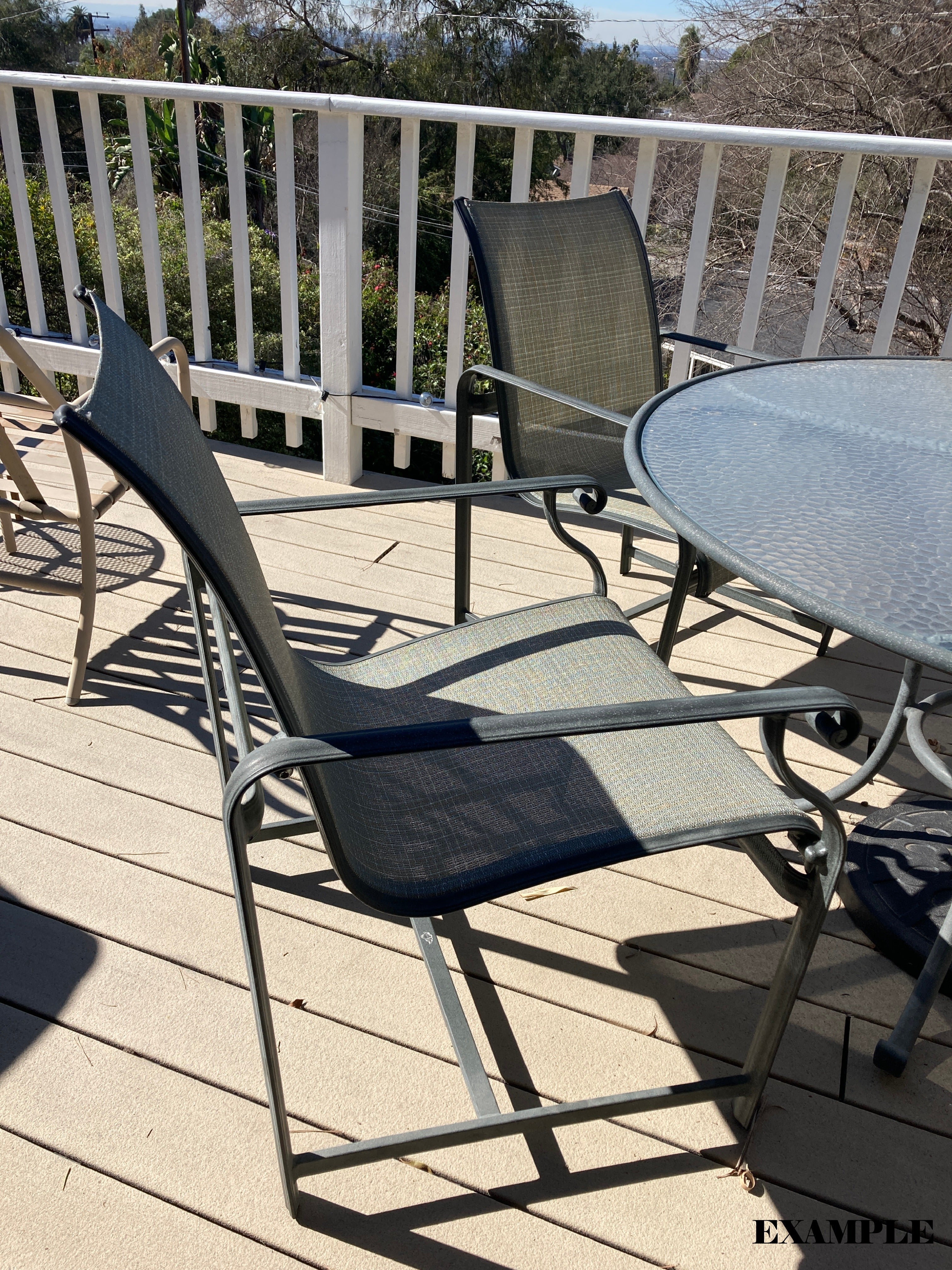 Great structural condition, make these chairs look brand new with a fresh powder coat and new fabric sling (sold separately).