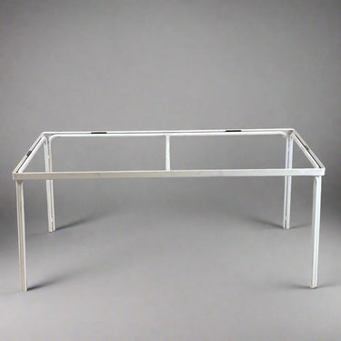 Aluminum Construction, Great structural condition, Make this table look brand new with a fresh powder coat finish and new tempered glass top. Seats 6 Persons.