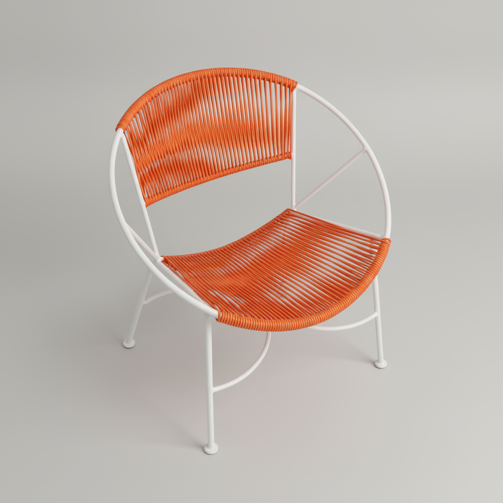 Retro style meets modern durability. This vintage outdoor chair features a Glossy White frame, Orange .22" vinyl cording, and weld cups on the feet for added protection. Inspired by the 70s/80s vinyl cord trend, it’s floating seat design perfect for outdoor lounging and conversation.