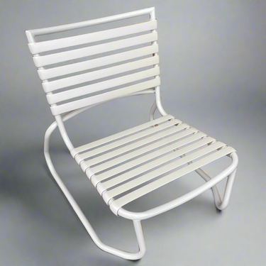 Enjoy poolside living in style with these classic Tropikai Sand Chairs by Tropitone. Rare and timeless, these chairs have been restored in a sleek monochrome Dove-on-Dove finish and strap color, giving them a clean, modern look while preserving their vintage charm.