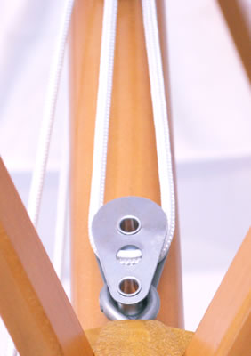 - Umbrella raises and lowers via rope and 4 pulley lift