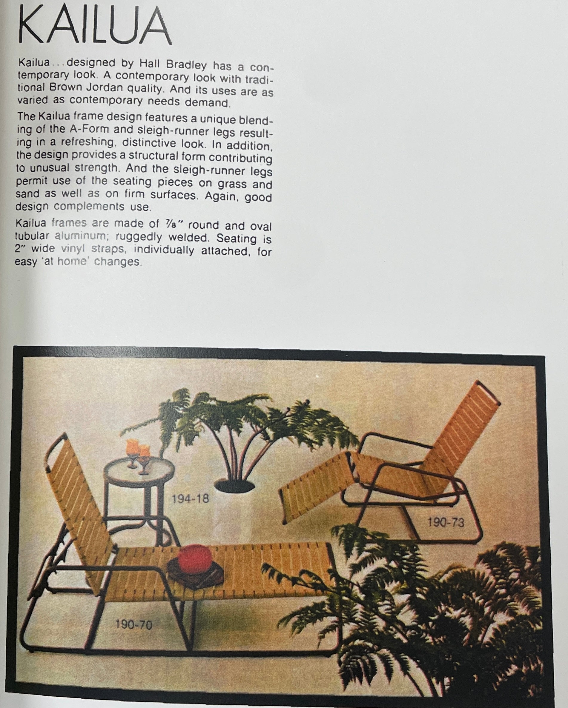 Newly refinished in a crisp Leisure Brown powder coat, this Brown Jordan Kailua collection features UV-resistant Putty vinyl straps for lasting durability and a breezy, modern appeal. Designed by Hall Bradley, Kailua stands apart with its distinctive fusion of A-Form and sleigh runner legs—an elegant structural detail that brings both character and comfort. Its relaxed curves and open profile capture the spirit of island living, while embodying Brown Jordan’s legacy of American craftsmanship.