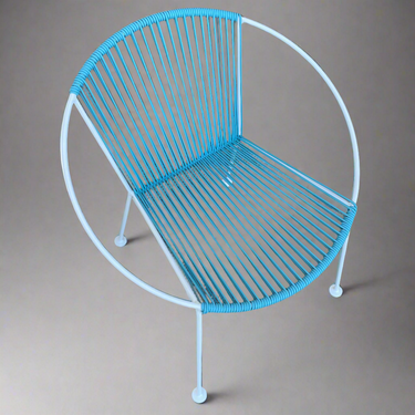 Retro style meets modern durability. This vintage outdoor chair features a Textured White frame, Turquoise .22" vinyl cording, and weld cups on the feet for added protection. Inspired by the 70s/80s vinyl cord trend, it’s floating seat design perfect for outdoor lounging and conversation.