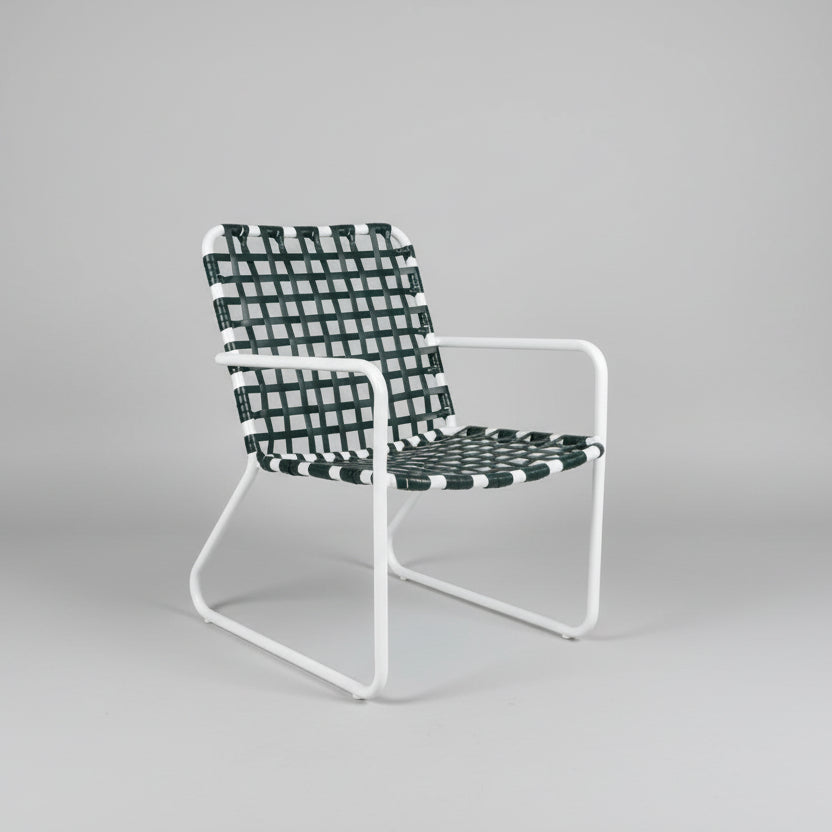 The Brown Jordan Lido collection is a longtime favorite, celebrated for its timeless appeal and exceptional construction. Welded round tubular aluminum frames are refinished in a fresh textured white and paired with new 5/8" Forest Green vinyl lacing in a classic waffle pattern. The result is a perfect balance of durability, comfort, and iconic mid-century outdoor style.