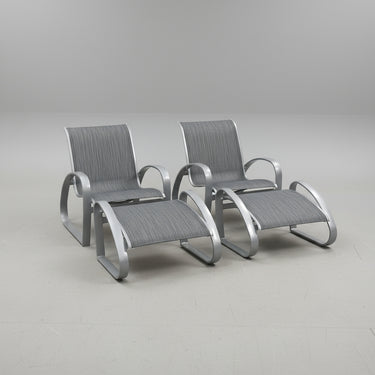 Consisting of Two Lounge Chairs and Two Ottomans, each piece boasts a Bonded Old Wheel Silver Finish on its sleek aluminum frame, paired with Phifertex Amalfi Rapids fabric—a durable, high-performance textile known for its crisp pattern and outdoor resilience. Whether positioned poolside or on a sunny patio, these pieces deliver timeless style and relaxing comfort.