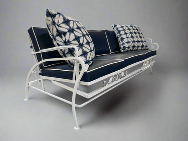 New Cushions Made with Phifertex Navy and White Piping on Seams