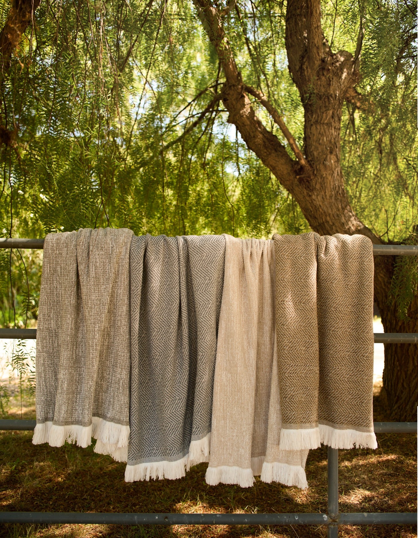 Perfectly cozy with exceptional softness and warmth, Sunbrella Herringbone Indoor Outdoor Throws add a touch of effortless elegance to any space. Featuring a refined herringbone weave that seamlessly blends two complementary hues, these throws deliver both style and a welcoming texture you’ll love to reach for.
