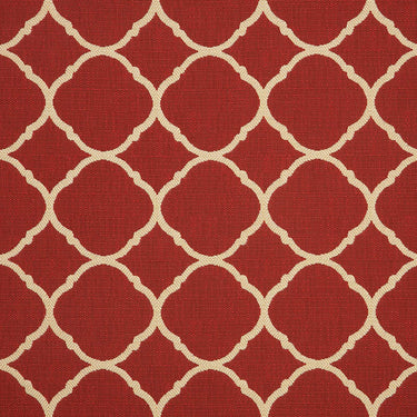 Accord II Crimson (45936-0000) is a deep red fabric with a beige geometric quatrefoil pattern. This fabric is designed to stay beautiful over time with built-in stain, water, pilling, and abrasion resistance. It is ideal for applications like indoor and outdoor upholstery, pillows, and more.
