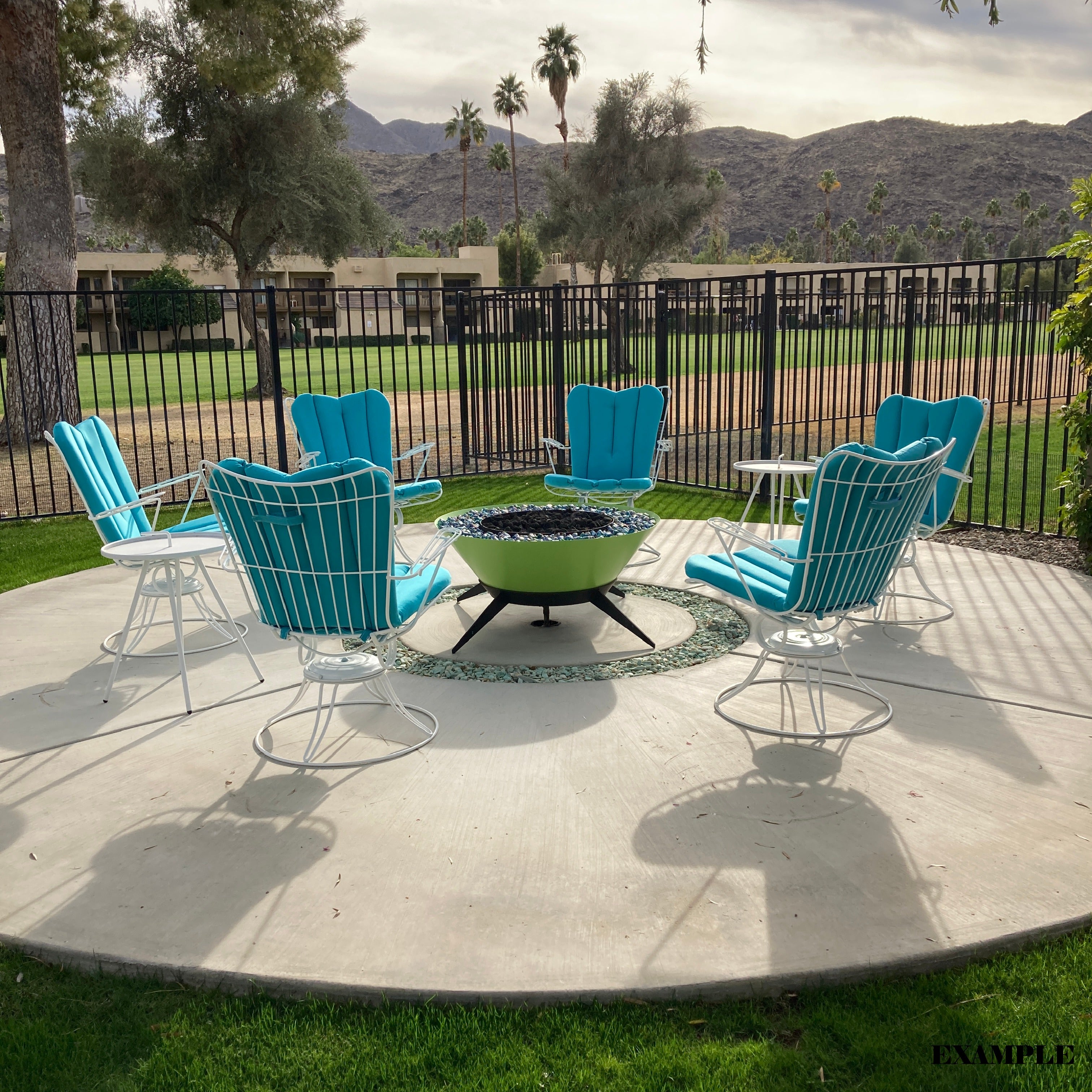 These cushions are made with top of the line Sunbrella® fabrics which are made to withstand the harshest conditions and still live on strong. Velcro cushion ties sewn onto the cushion in key areas for securing to frame. This is a custom fit design for the classic Homecrest Headliner Arm Chair Cushion Set [Model 25] from the Mid-Century Modern era.