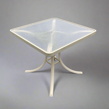 Tropitone 30" square dining table with new acrylic top. Durable aluminum frame, easy-care design, perfect for patios, balconies, or poolside.