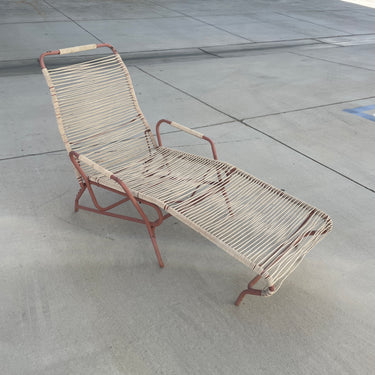 A striking piece from the Fashionaire line, this vintage chaise lounge showcases bold mid-century styling with a long, sculpted frame designed for complete relaxation. Its airy profile and graceful proportions make it equally suited to sunbathing, reading, or simply unwinding outdoors.