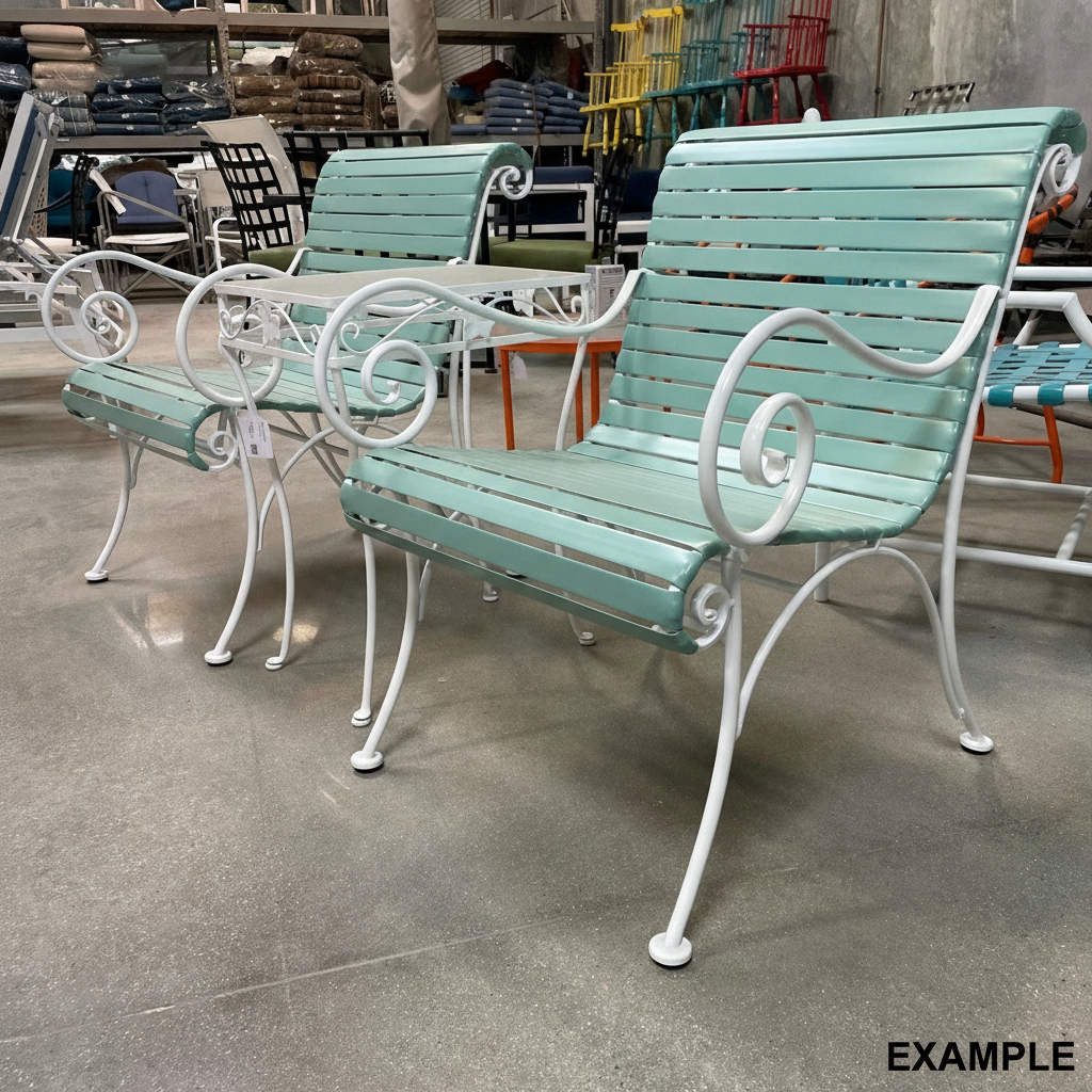 Great Structural Condition, Make These Chairs look brand new with a fresh powder coat and new vinyl strapping.