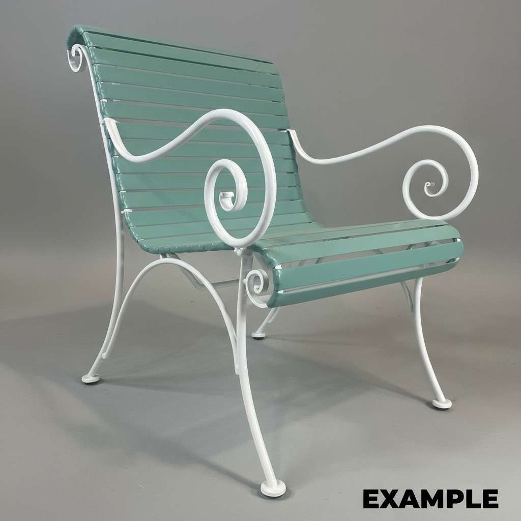 This set of two Woodard Ionian Spring lounge chairs reflects the elegance and craftsmanship that made Woodard one of America’s most celebrated outdoor furniture makers. With gracefully curved frames and sculptural detailing, the chairs embody a mid-century sensibility that feels both refined and inviting.
