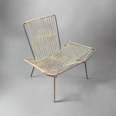 Reproduction lounge chairs in the style of Alan Gould designs. Great structural condition, make these chairs look brand new with a fresh powder coat and new .22" cording.
