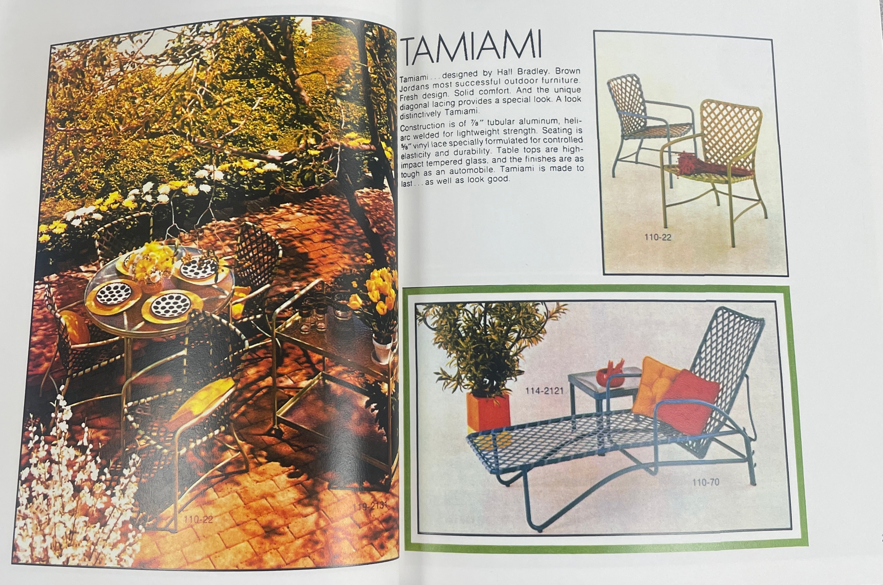 Designed in the 1950s by Hall Bradley, the Brown Jordan Tamiami collection became one of the brand’s most recognizable mid-century outdoor designs. Its introduction helped popularize the term “Sun Fashions,” reflecting Brown Jordan’s vision of stylish, durable furnishings created specifically for outdoor living.
