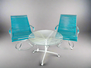 Beautifully refinished in White Powder Coating, New UV resistant vinyl straps in Turquoise