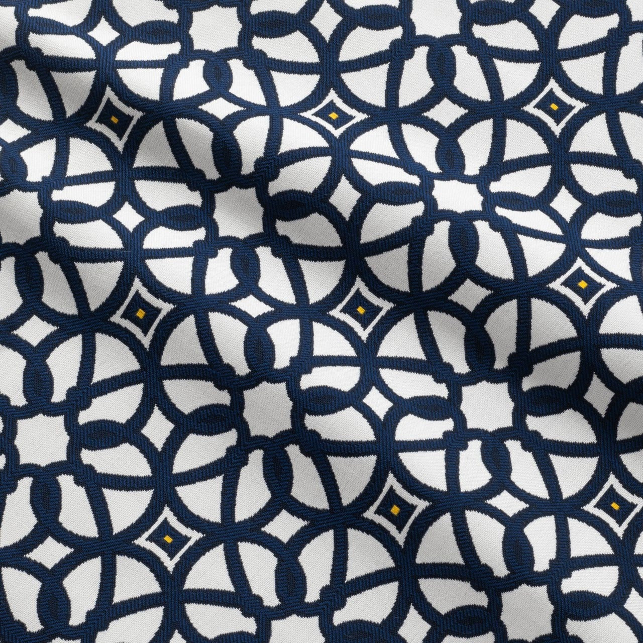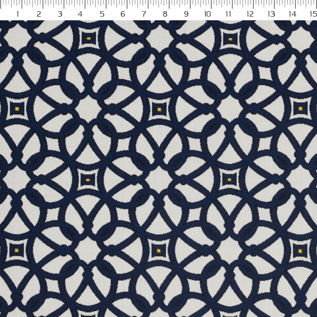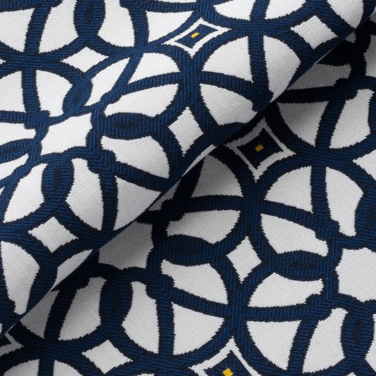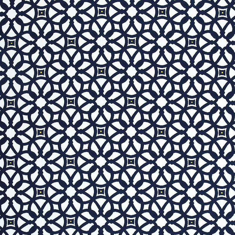 Luxe Indigo (45690-0000) is an all-over classic fret pattern in a crisp navy and white combination with small pops of buttercup yellow nestled in the motif center. This long-lasting Sunbrella fabric is resistant to stains, pilling, and abrasion. Use it as a base or an accent piece for projects including indoor and outdoor upholstery, curtains, pillows, and more.