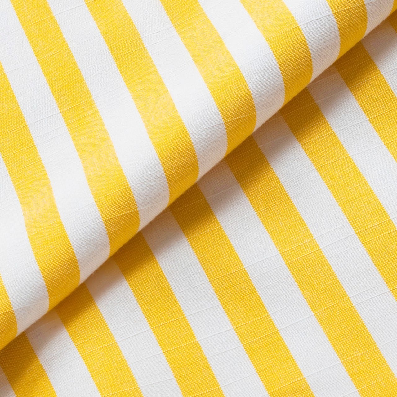 Sail Away Sunflower (40606-0001) is a vintage-inspired stripe in vibrant yellow and crisp white. Created with a dry, chambray-type weave and the introduction of a slub yarn, this fabric brings texture and a fresh look to a classic style. Unmatched durability meets elegant style with built-in stain, water, pilling, and abrasion resistance. It is a perfect addition for indoor or outdoor applications like cushions, drapery, umbrellas, furniture, marine upholstery, and more.